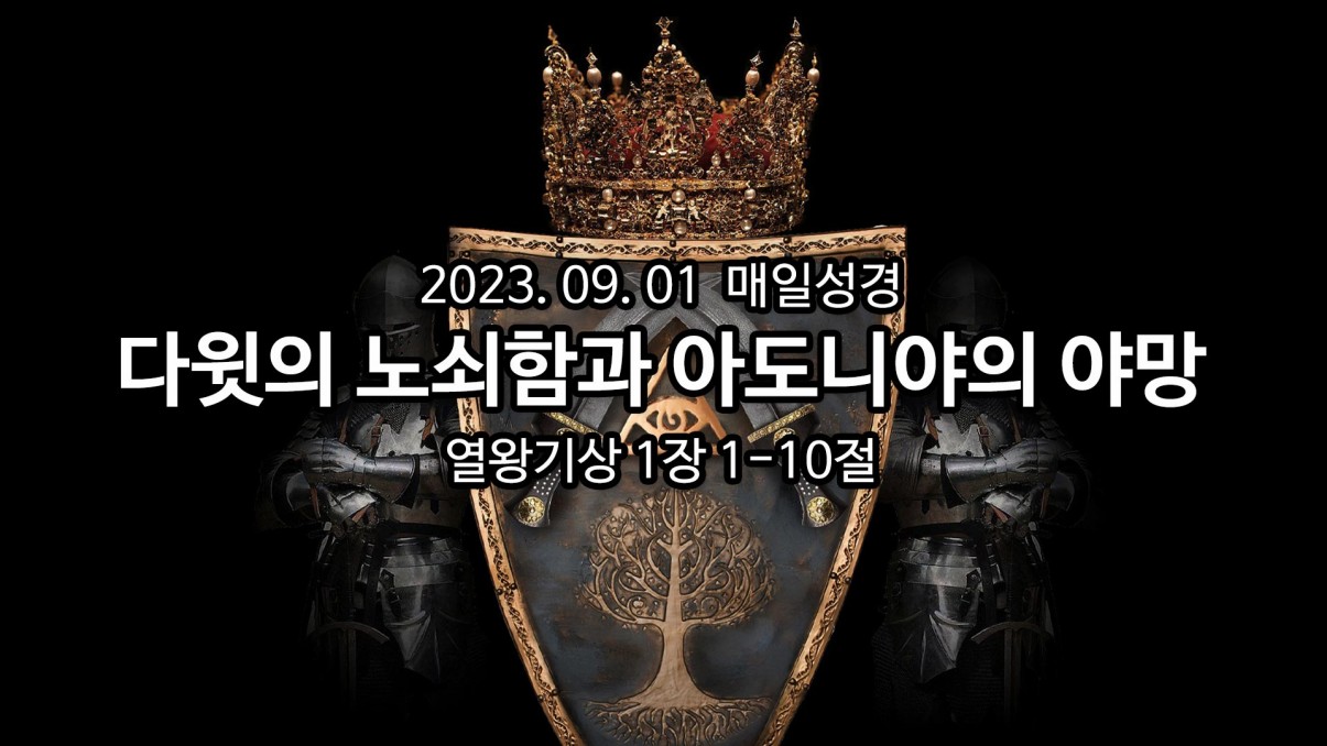 2023년 9월 1일 매일성경 아침묵상 페이지 정보 작성자 Joshua 댓글 0건 조회 689회 작성일 23-09-01 07:36 목록 본문 다윗의 노쇠함과 아도니야의 야망 열왕기상 1장 1-10절 이전글2023년 9월 2일 매일성경 아침묵상 23.09.02 다음글2023년 8월 31일 매일성경 아침묵상 23.08.31 댓글 0 댓글목록 등록된 댓글이 없습니다.
