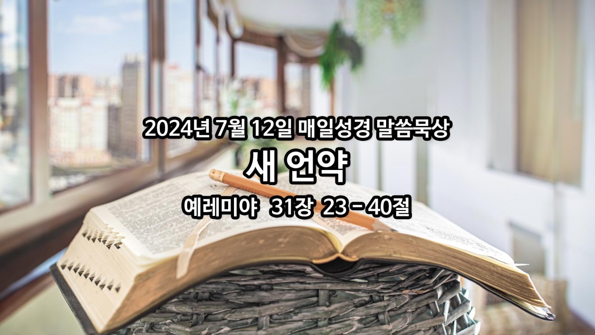 2024년 7월 12일 매일성경 말씀묵상 페이지 정보 작성자 Joshua 댓글 0건 조회 268회 작성일 24-07-12 07:58 목록 본문 새 언약 예레미야 31장 23 – 40절 이전글2024년 7월 13일 매일성경 말씀묵상 24.07.13 다음글2024년 7월 11일 매일성경 말씀묵상 24.07.11 댓글 0 댓글목록 등록된 댓글이 없습니다.